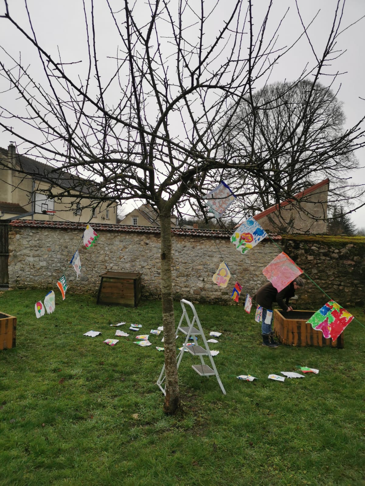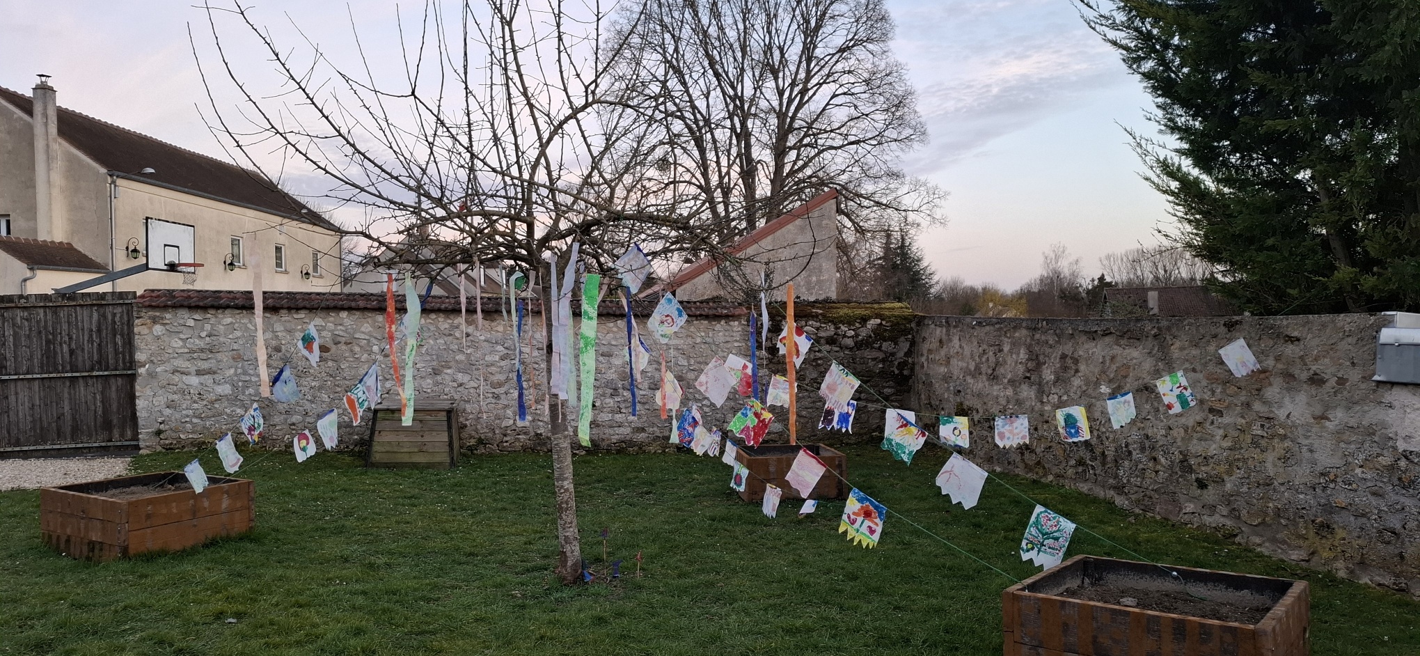 L’idée était de faire du jardin de l’école un lieu d’expérimentation ludique où les élèves pourraient jouer avec le vent, la végétation et les couleurs à travers divers ateliers créatifs :