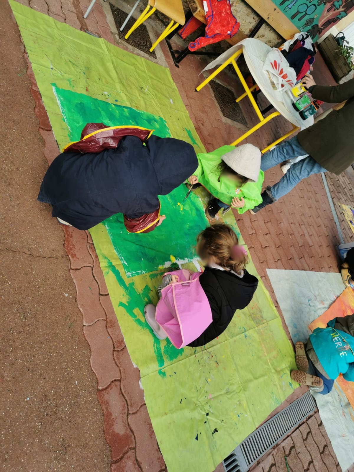 – peinture sur les arbres et les bacs avec une peinture suédoise à base de farine.