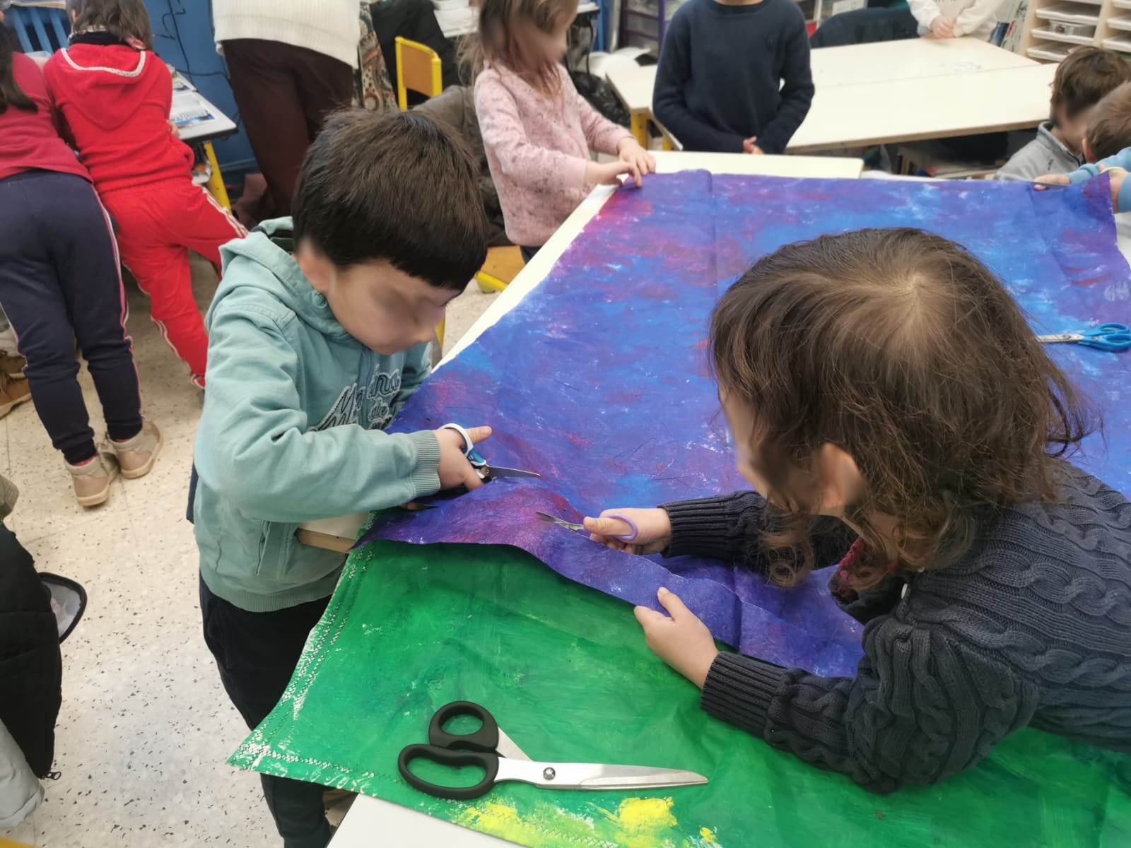 Les élèves ont présenté leur travail aux parents, à l’équipe de la mairie et aux intervenants lors d’un vernissage le vendredi 7 mars 2025 :