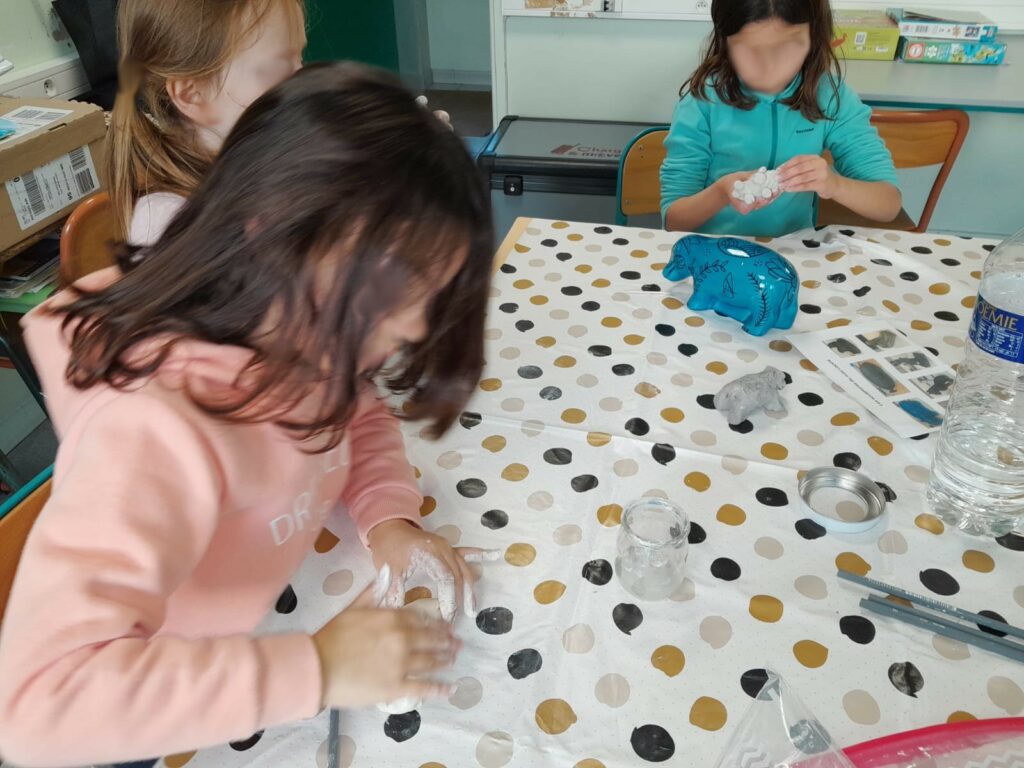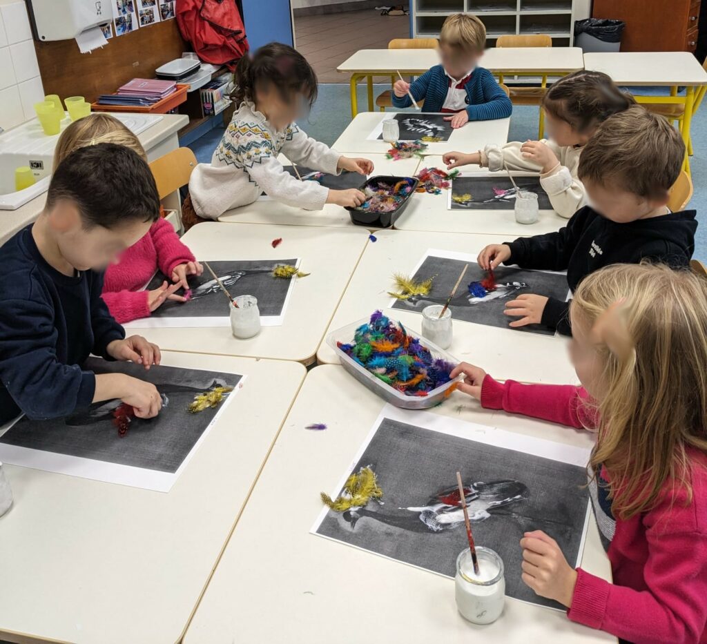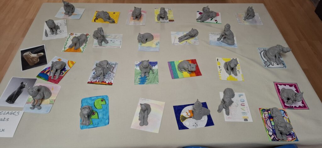Les classes de maternelle ont travaillé autour du kit Mini-Louvre des animaux dans leur classe sous forme d’ateliers, notamment autour des animaux.