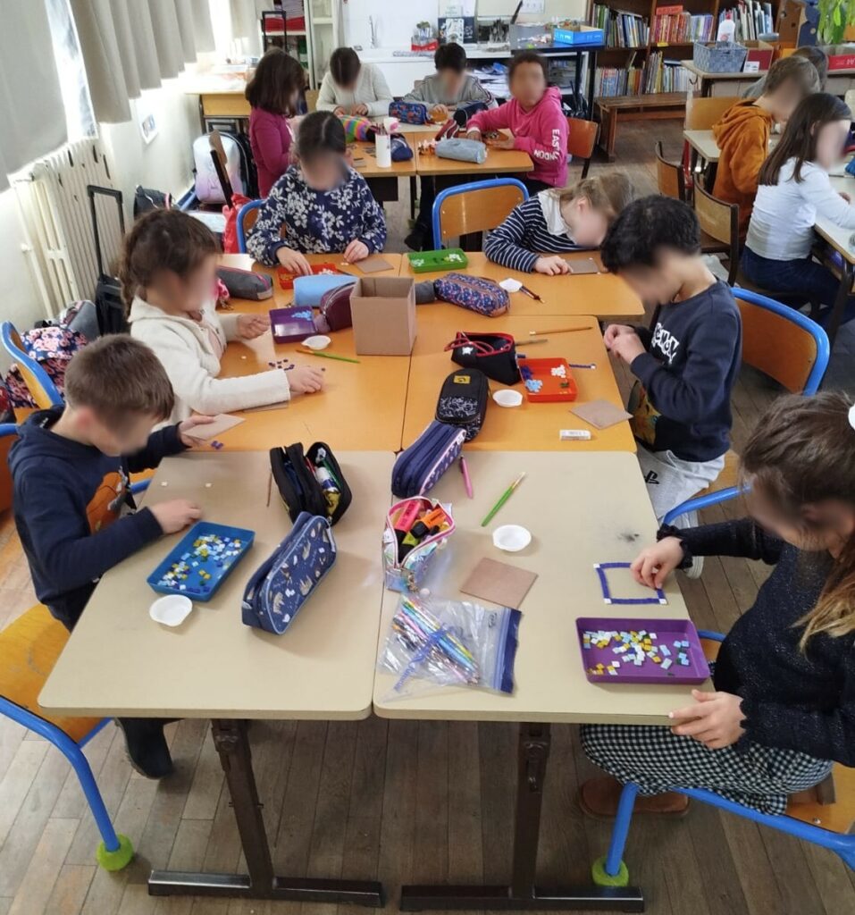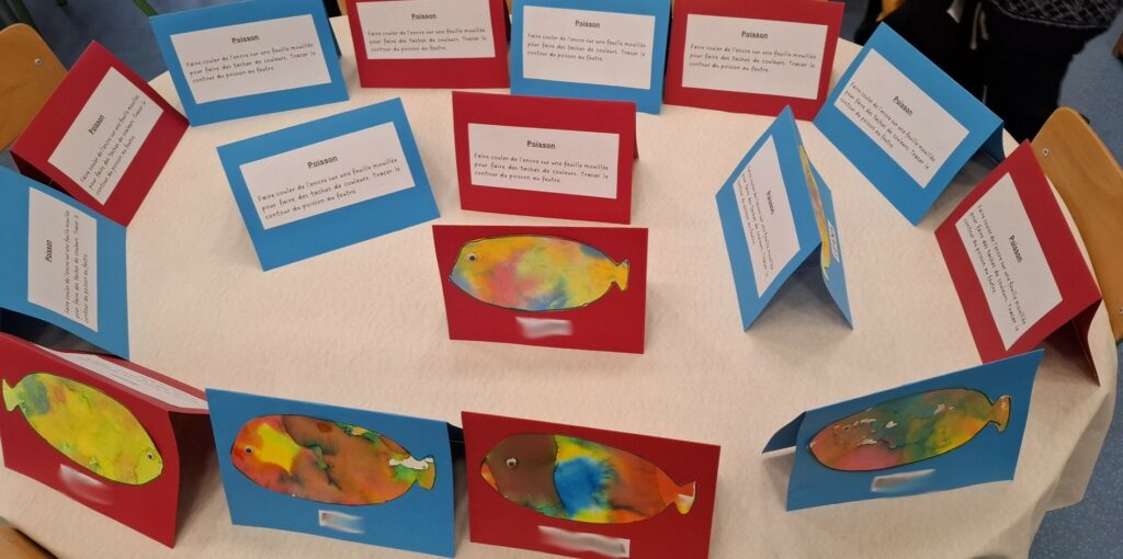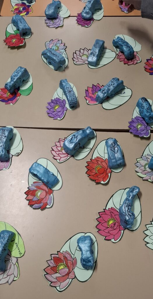 De retour à l’école, nous avons déballé les reproductions et commencé tout de suite à mettre en pratique les « billes » données lors de la formation.