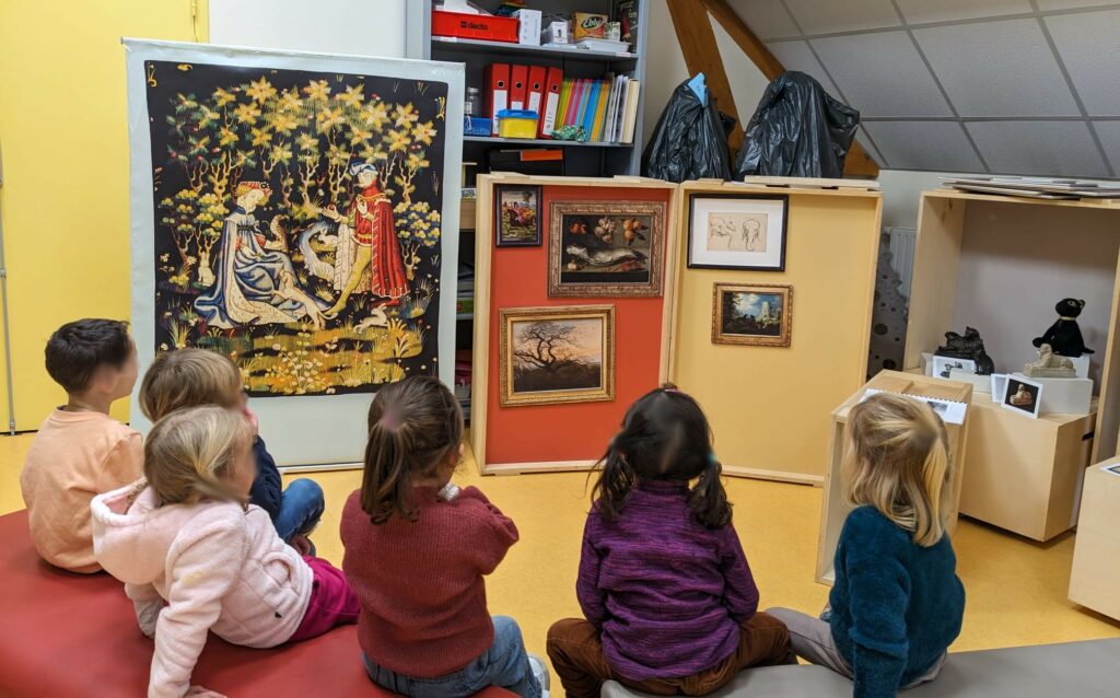 Nous avons aménagé une salle vide de l’école en mini-musée où nous avons emmené régulièrement nos élèves lors de l’étude de chaque œuvre.
